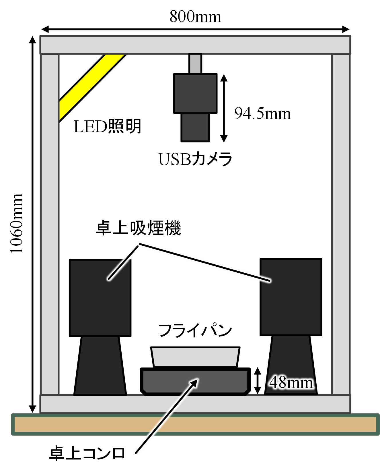 本データベースは,上記の撮影環境で取得した動画(30FPS,幅1280,高さ720,チャンネル数3)をフレーム単位に分割し,画像化したものをトリミングおよびリサイズしてから公開しています.フレーム分割時には,全フレームを抽出しており,連番の PNG 画像として保存しました.各画像は左上座標(325,45)および右下座標(955,675)で領域を切り出した後,横244,幅244になるように,バイリニア補間によってリサイズしています.動画撮影時の調理は,あらかじめ用意した複数のレシピ文に従っておこなわれました.各フレームに,対応するレシピ文を付与しており,このアノテーションは実際に調理をおこなった者がおこないました.